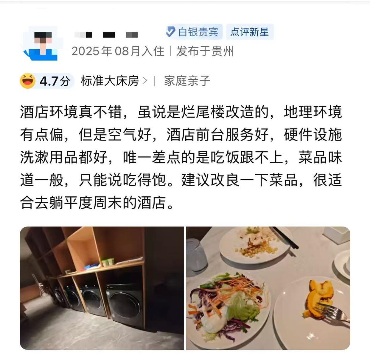 携程平台上,该酒店被列为“独山豪华酒店榜”第一。在308条住客评价中,有人听说该酒店由“天下第一水司楼”改造而成,特地前往体验。还有人称,地理位置有些偏僻,服务与硬件设施好,建议改良一下菜品。