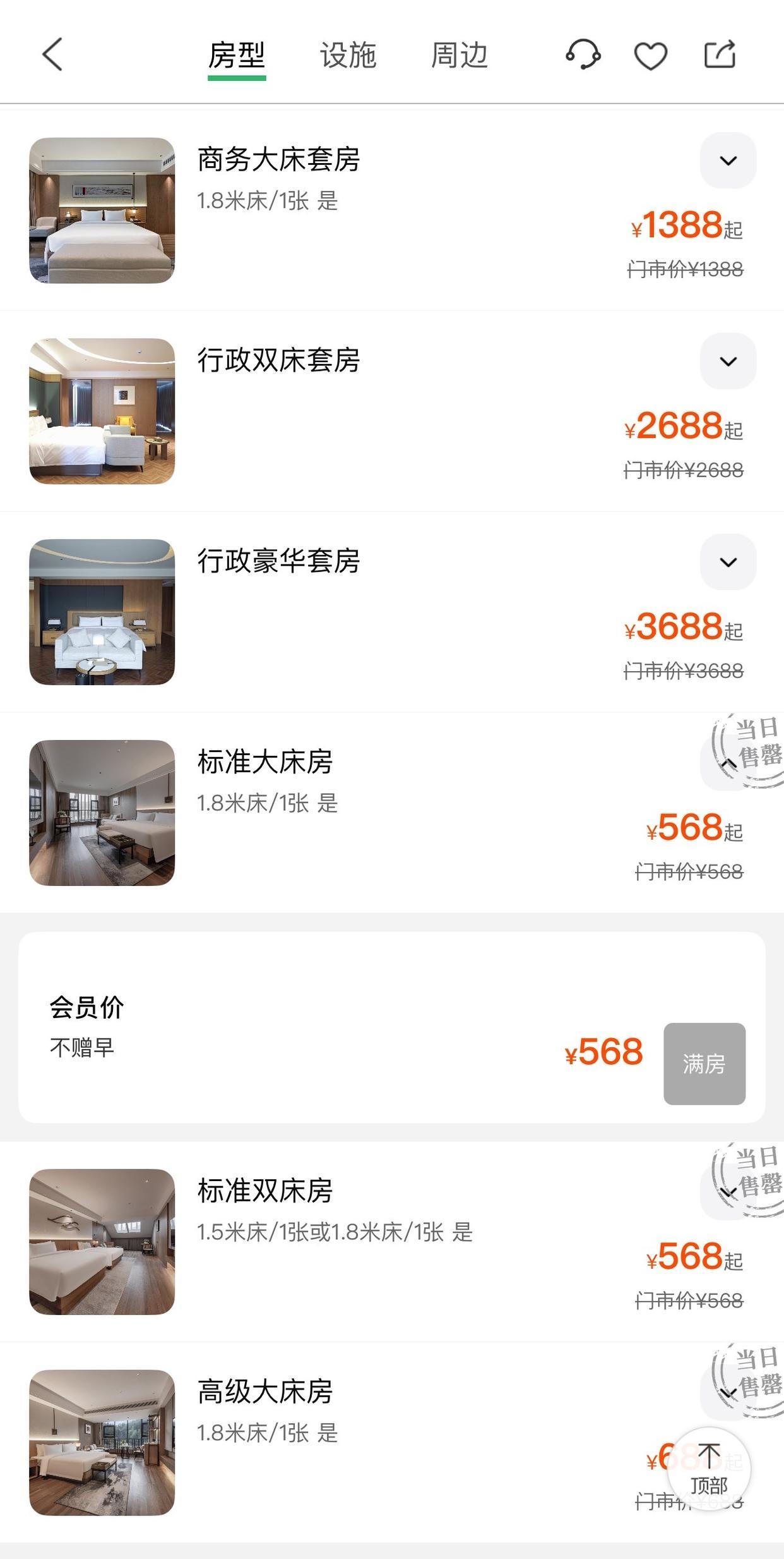 10月1日,九派新闻检索多个旅行消费平台发现,标准大床房、标准双床房、高级大床房三种房型已订满。
